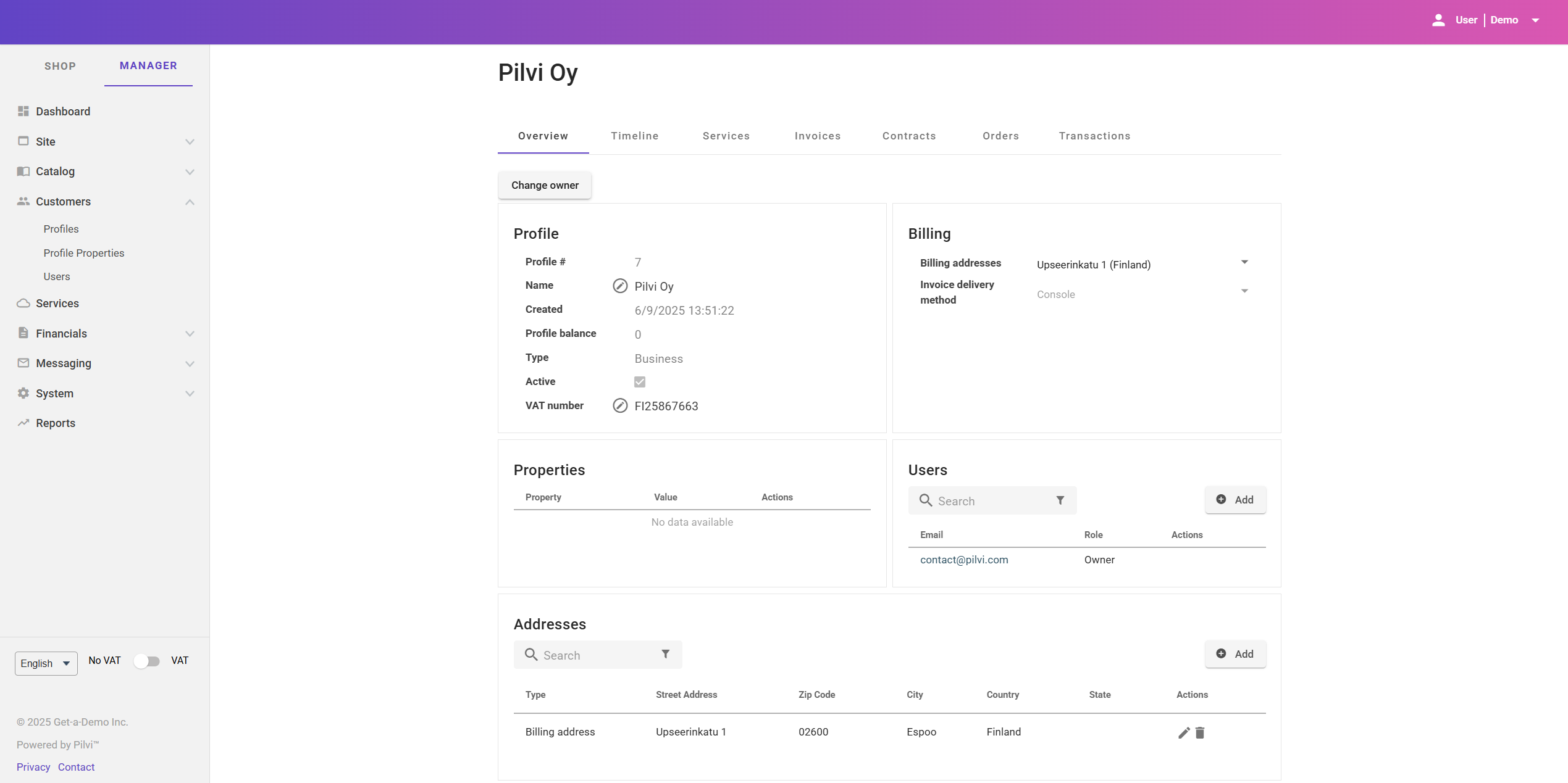 The Customers section is where you manage your customer accounts. Add new profiles, enrich customer data, and make necessary account modifications. As an administrator, you also have the ability to place orders, manage subscriptions and adjust billing on behalf of your customers.
