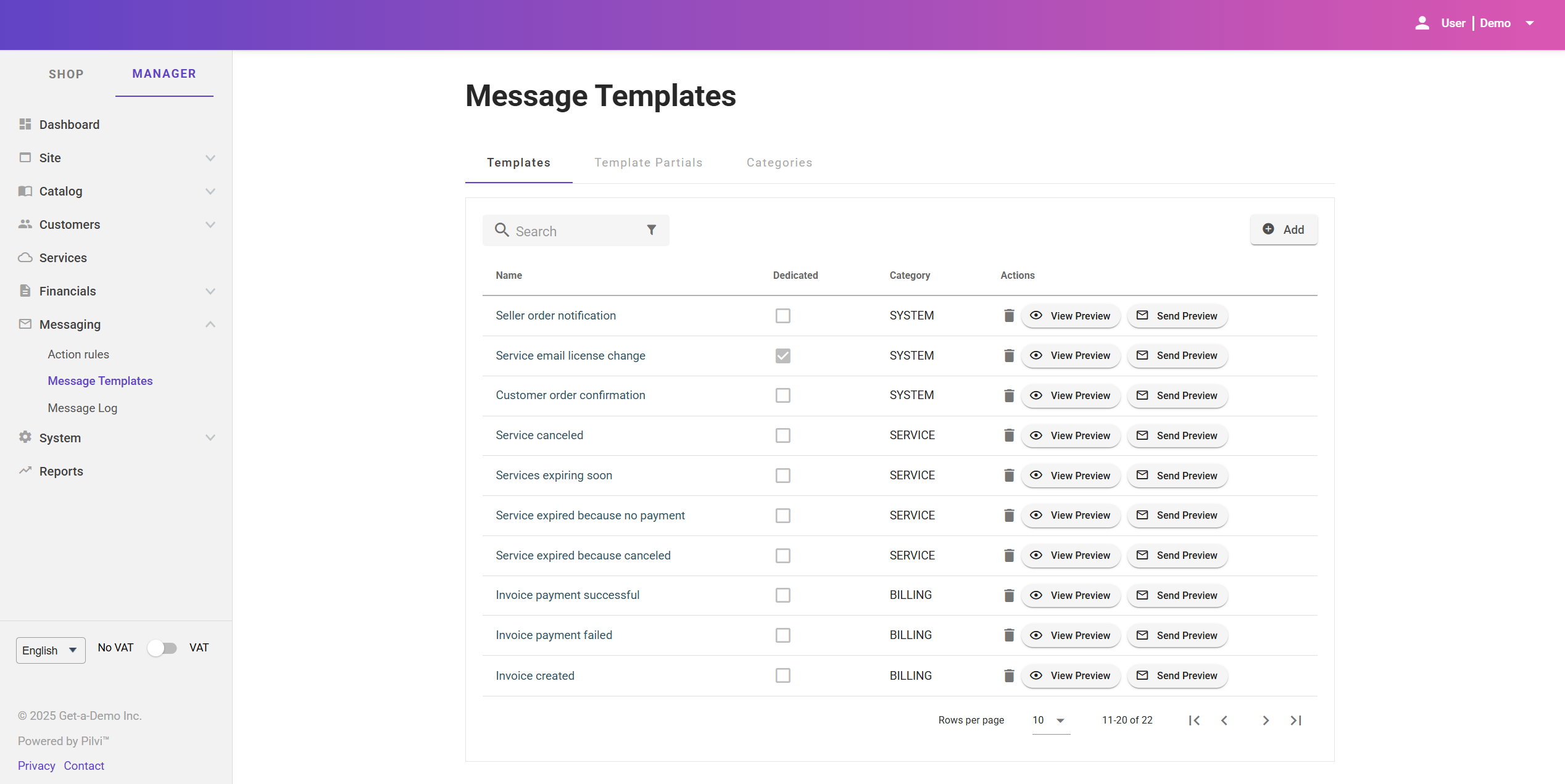 The Communications center houses message templates, automated messaging sequences, and a communication log. Access ready-made message templates and workflows for various scenarios – from customer onboarding to quote requests and orders, as well as customer billing, service management, and usage. Leverage message automation to streamline internal workflows and send SMS reminders.
